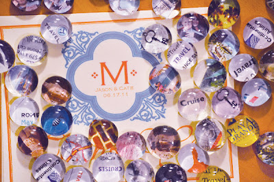 Paper and magnets were glued to the back side of marbles for quick and easy wedding favors. |