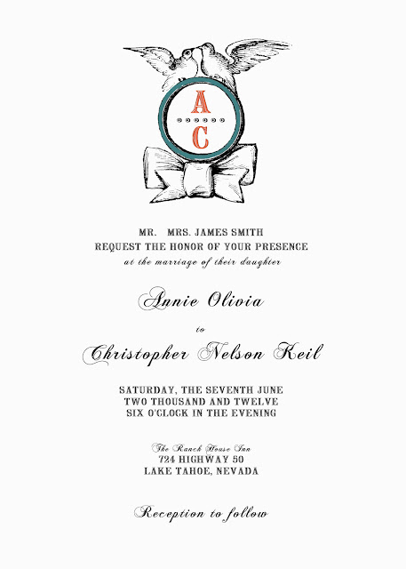 I created this wedding invitation with one simple graphic from her site and some lovely fonts you can find for free on Dafont.com The good thing about making your own is you get exactly what you want. No one else has on exactly like it, and it is usually cheaper than having someone else do it. Also it is fun people! You can find all sorts of paper that would be beautiful and easy to print on at any online paper store, or the folks at Paper Moon in Reno can help you out.